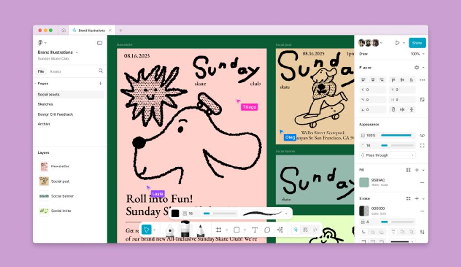 Figma Buzz capacita a los profesionales de marketing para producir eficientemente materiales de marketing de marca utilizando plantillas creadas por diseñadores. La herramienta facilita la creación masiva de activos a partir de fuentes de datos como hojas de cálculo, e incluye generación de imágenes de IA y funciones de alteración de fondo. Mientras tanto, Figma Draw, una nueva herramienta de edición vectorial, mejora las capacidades de diseño de Figma con funciones como texto en un trazado, relleno de patrones y herramientas de selección avanzadas, eliminando la necesidad de software de edición vectorial externo.