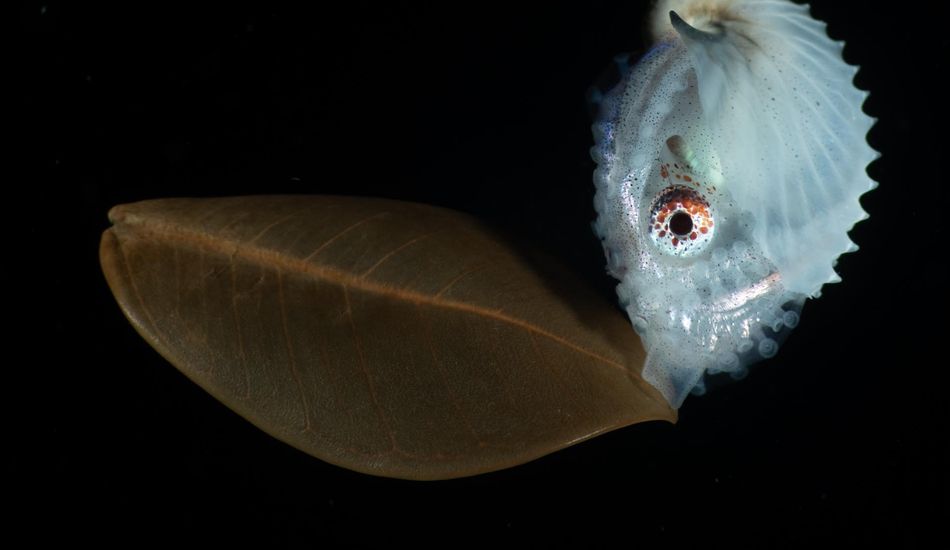 Tinnapat Netcharussaeng, un joven fotógrafo submarino, sorprendió a todos con una imagen de otro mundo tomada durante una inmersión nocturna en Filipinas. El sujeto era un argonauta femenino. En realidad, no es un argonauta, sino un pulpo con una concha similar a la de un argonauta. Fue visto aferrado a una hoja, usándola como una balsa en el mar abierto. ¿No es asombroso?