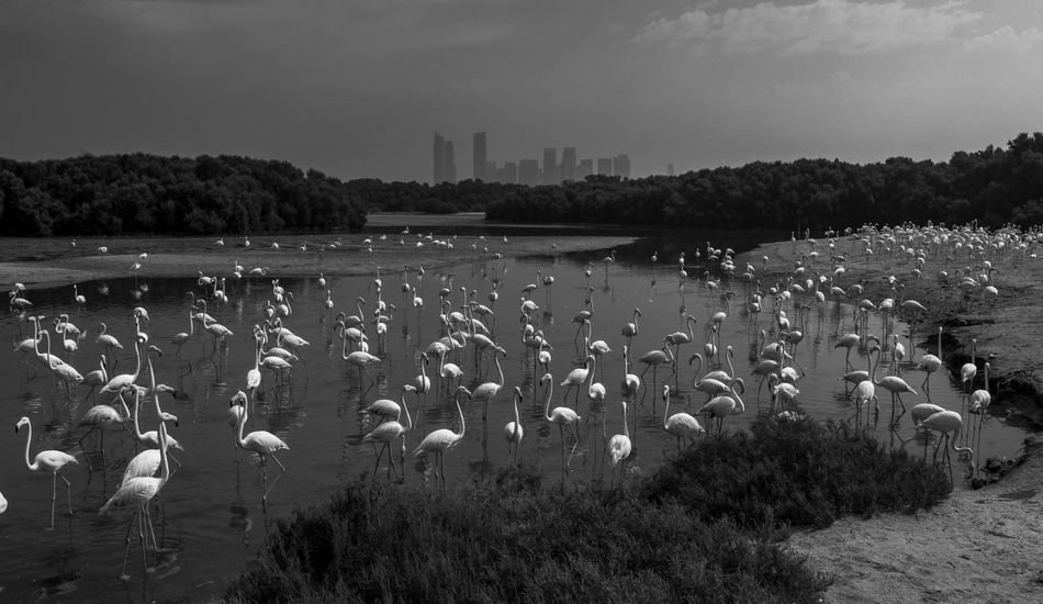 Sarthak Agrawal avistó una bandada de flamencos contra el horizonte de Dubái en el Santuario de Vida Silvestre Ras Al Khor. Este humedal urbano ofrece un refugio vital para las aves migratorias. Incluso en blanco y negro, los flamencos son inconfundibles con sus cuellos largos y picos curvos. Es impresionante cómo la vida silvestre logra prosperar incluso en entornos urbanos.